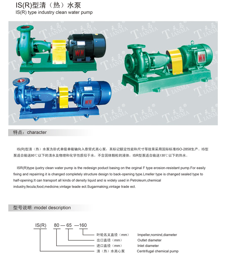 IS(R)型清(熱)水泵 質量穩定:實行全過程質量監控,多方位檢測! 合理的價格:有效的內部成本控制,減少開支,為客戶著想! 交貨快:完善的生產線,充足的庫存,縮短交貨時間! TEL:0550-7029888 FAX:0550-7029688 EMAIL:987655188@qq.com